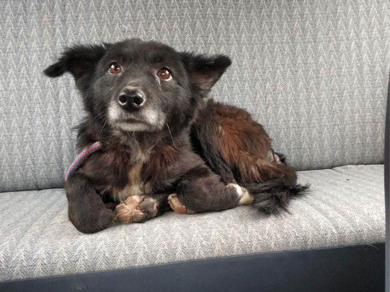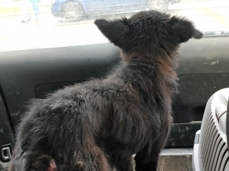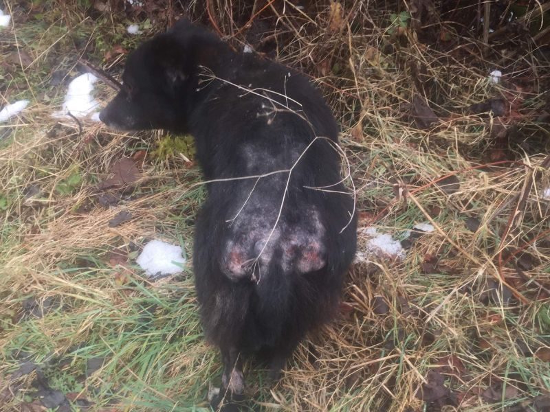 I was called by a clerical worker from a nearby granary, that a little, old, sick dog, a male, she thought, had been dumped there. It was very cold, with patchy snow on the ground; conditions which kill a dog in that condition.